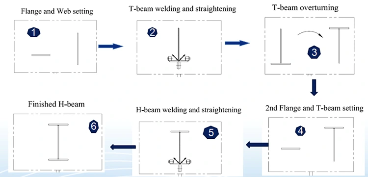 III, in I h trabem welding lineae habet ut combined munus h trabem, T, trabem ecclesiam, welding et flange deformatio erigens post welding. Et sic potest verius et cursim animadverto H trabem et T trabem production.it habet sequenti commoda: simplex operatio, minus labore sumptus et parva operimentum area.