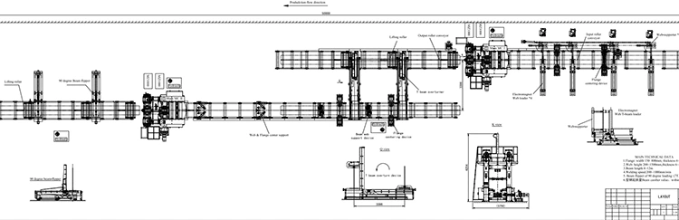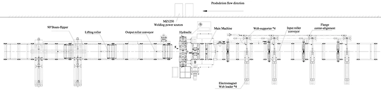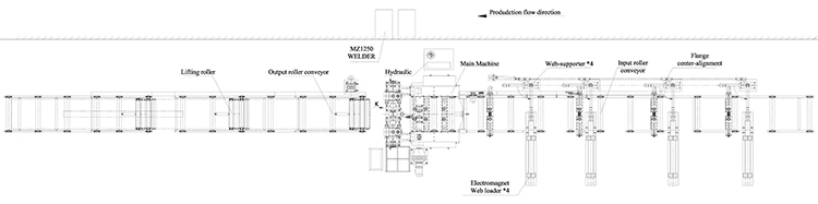 Et vexillum Zhj3-in I h trabem welding linearum consistit ex uno input cylindro mensam, principalis welding et erigens statione, outputroller Table.on Pandora et Righting Station ibi InstalledWith vexillum et Clamping et LABORS et Web.The et Clamping et Welding Power et Welding et Taxi et Clamping et Welding Box.