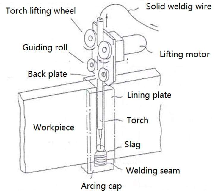 Cross labor lapsus mechanism potest adjust in positione welding gun in electroslag welding ne welding deviationem;